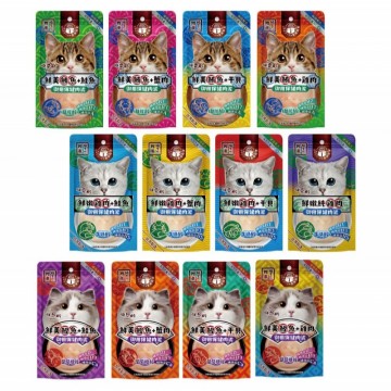 ▸ 機能保健配方,不含化學膠類 ▸ 添加牛磺酸/離胺酸/葡萄糖胺機能保健成分 ▸ 高肉含量,可搭配飼料一起食用 -台灣製造 產地直送- 原價 : 630 現場價:NT$450 【喜樂寵宴】貓主子御用無膠鮮湯包(14入)