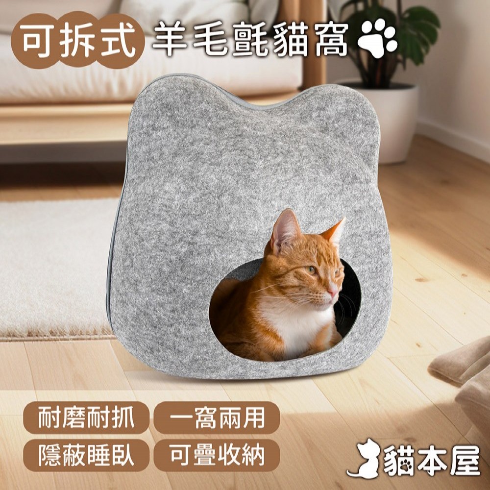 四季通用 可拆式羊毛氈貓窩-淺灰