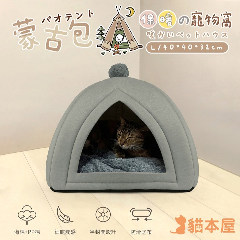 蒙古包造型 半封閉 保暖寵物窩(L號)-灰色