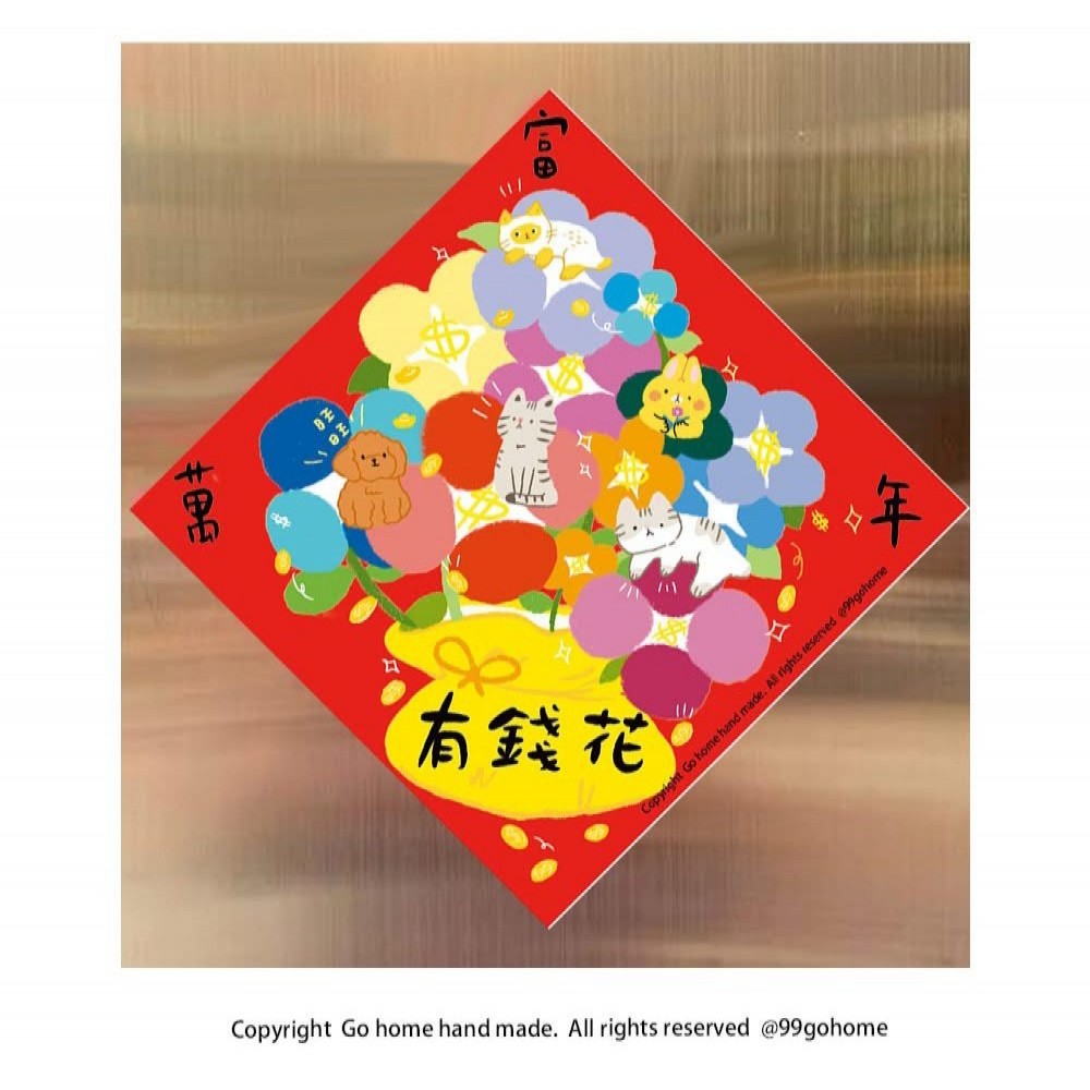 #回家手創春聯#手繪春聯#春聯#萬年富貴#有錢花#貓春聯#犬春聯