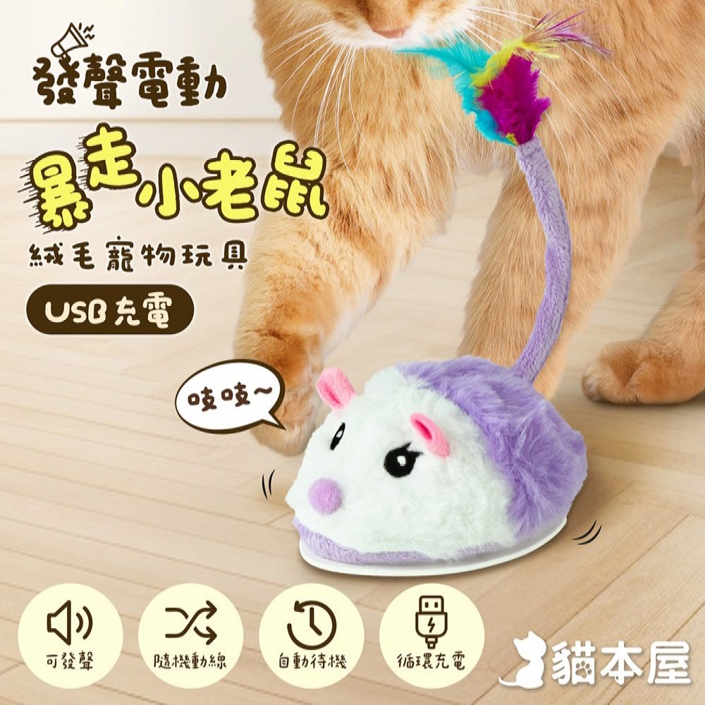 T07 電動小老鼠逗貓玩具(USB充電式)-紫色